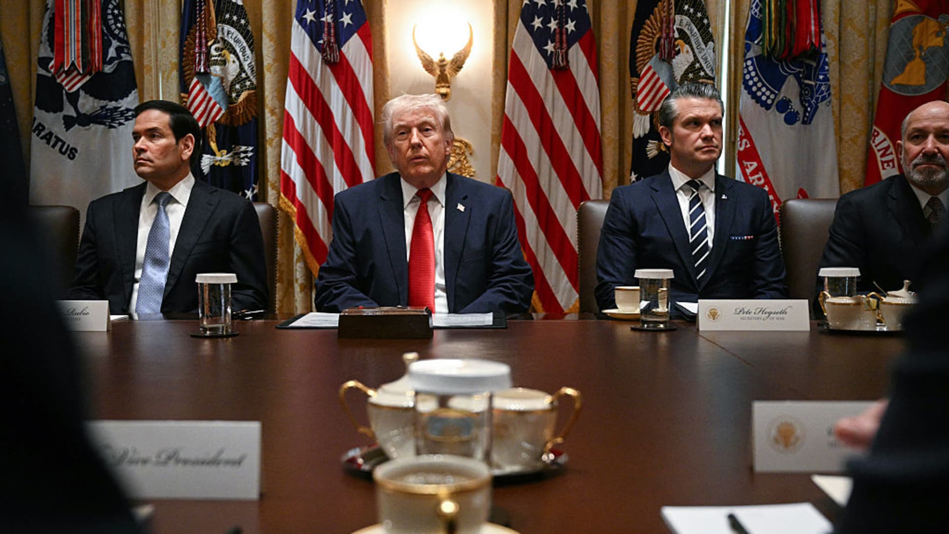 استضاف الرئيس الأمريكي دونالد ترامب اجتماعًا لمجلس الوزراء في غرفة مجلس الوزراء بالبيت الأبيض في 26 مارس 2026.