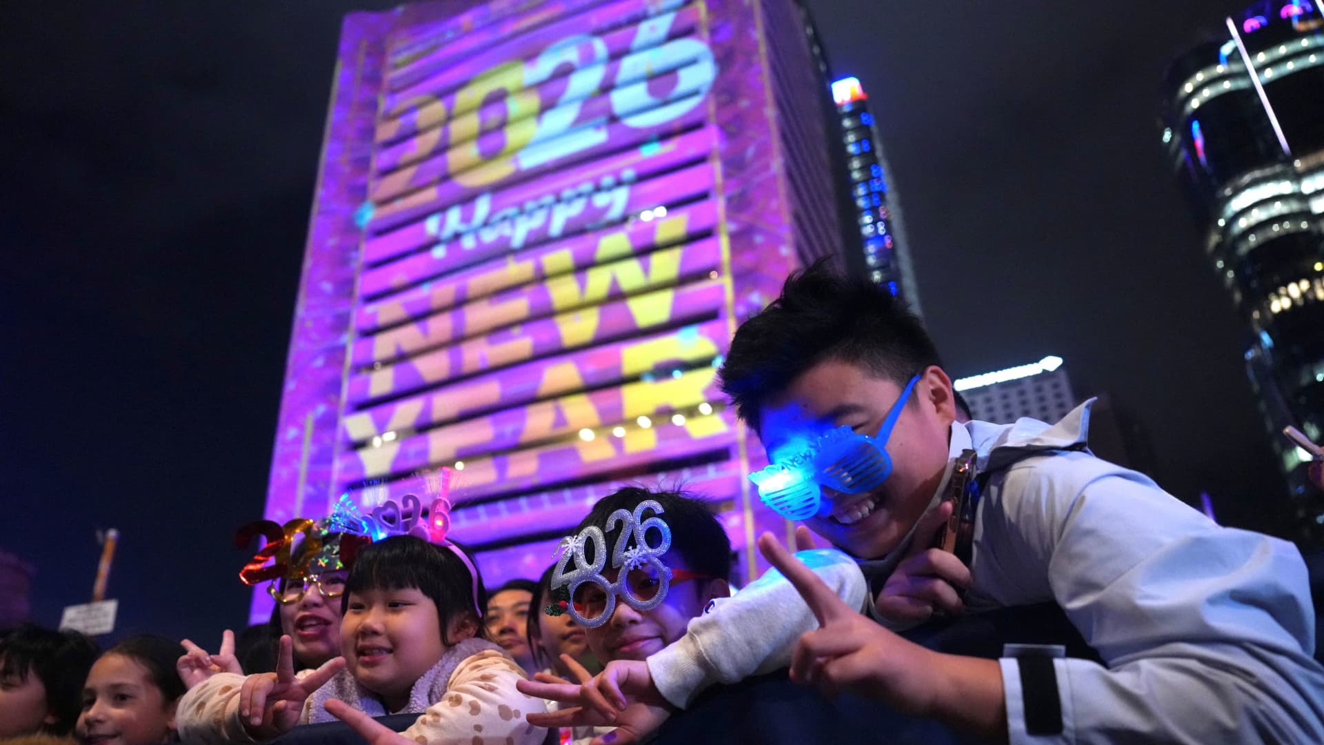 احتفل الناس برأس السنة الجديدة في مبنى بنك الصين في وسط هونغ كونغ، الصين، في 1 يناير 2026.