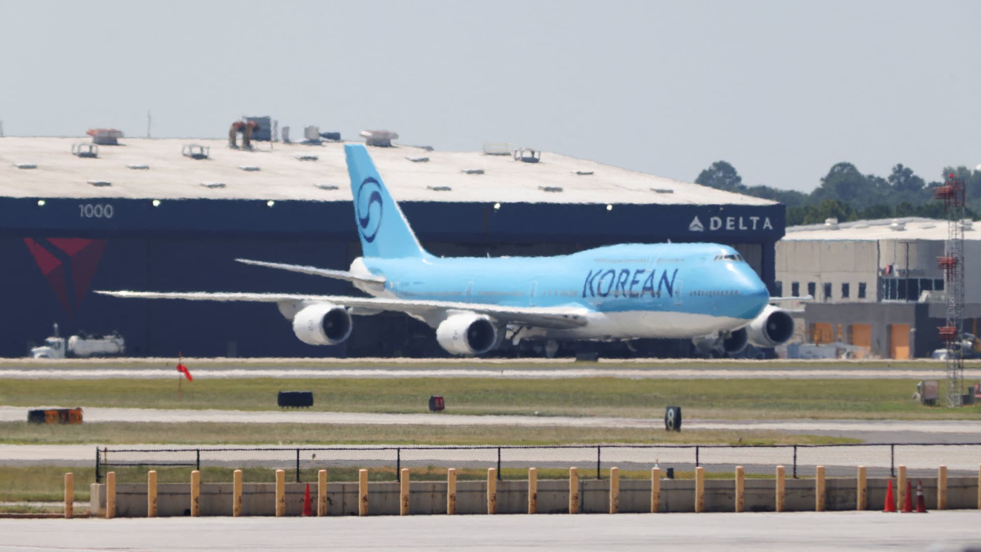 • هبطت طائرة بوينغ 747-8I من الخطوط الجوية الكورية في أتلانتا يوم الأربعاء لجمع هؤلاء العمال.