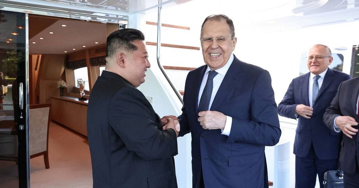 التقى وزير الخارجية الروسي سيرجي لافروف، السبت، بزعيم كوريا الشمالية كيم جونج أون، في مدينة وونسان. تم نشر صورة للقاء على تطبيق "تليجرام" من قبل وزارة الخارجية الروسية.